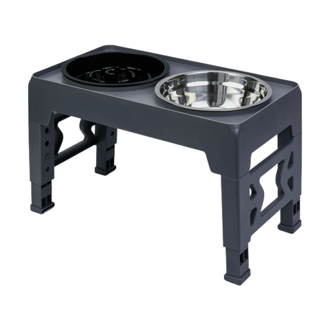 Comedero lento elevado de acero inoxidable para mascotas, cuenco para perros y gatos con cuenco para perros pequeños ajustable de acero inoxidable duradero de 2 alturas
