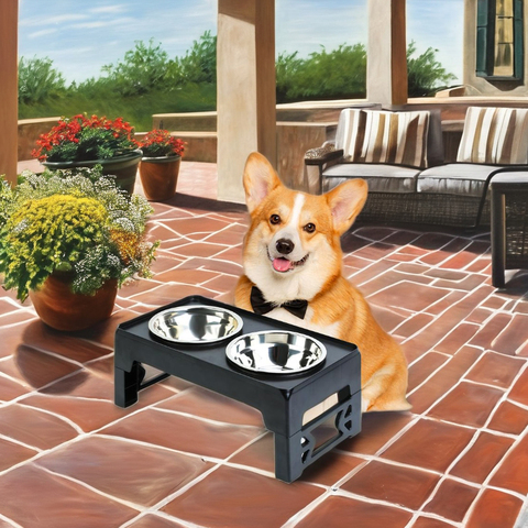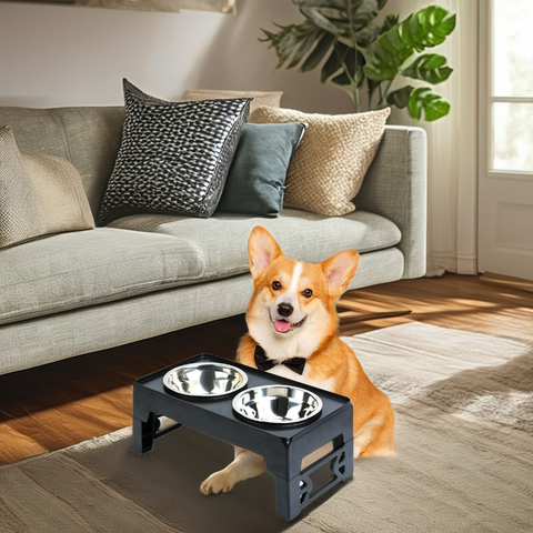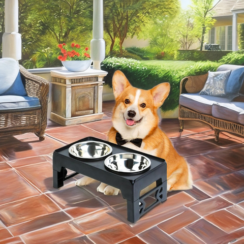 Alimentador de comida para mascotas ecológico con soporte para cuenco de perro ajustable con 2 alturas para cachorros pequeños/gatos para viajes